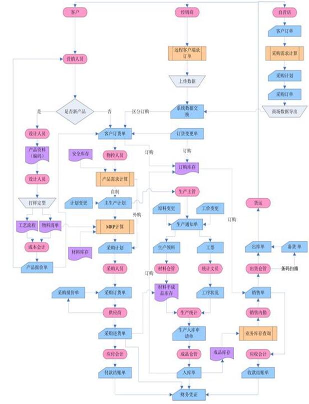 集采购、销售、库存、生产、物流、人事、财务、管理一体化。